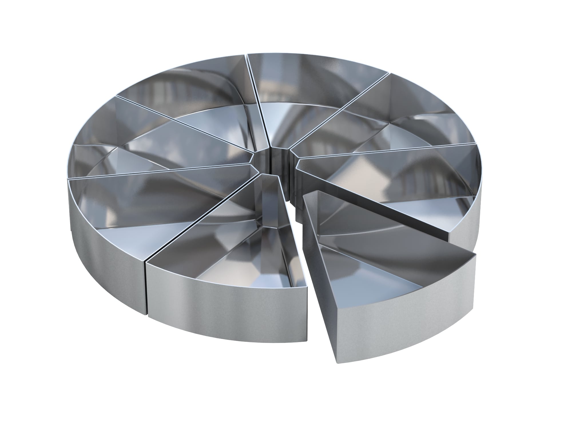 Гастроемкость из нержавеющей стали в сковороду диаметром 850мм. В сковороду необходим комплект из 8 сегментов, высота -50мм, объем-2,5л, толщина-1,2мм