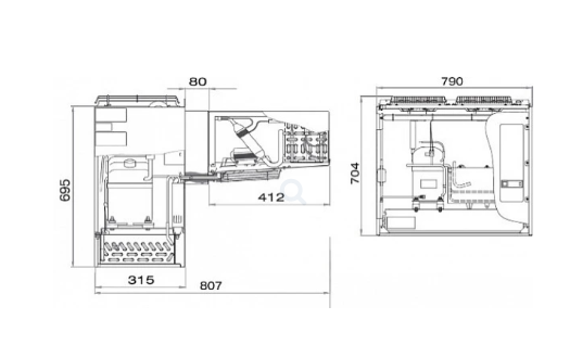 807х790х704мм, Хладагент R404A Температурный режим, °С -15...- 25, Maксимальное энергопотребление, кВт 2, 380В, Производительность 1200м3/час