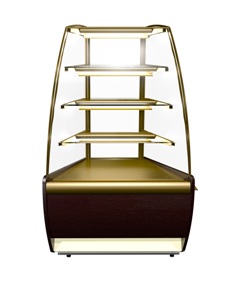 Витрина кондитерская угловая, (+6…+12С), со встроенным агрегатом, гнутое стекло, подсветка, 3 стеклянные полки, полезный объем 0,1м3.