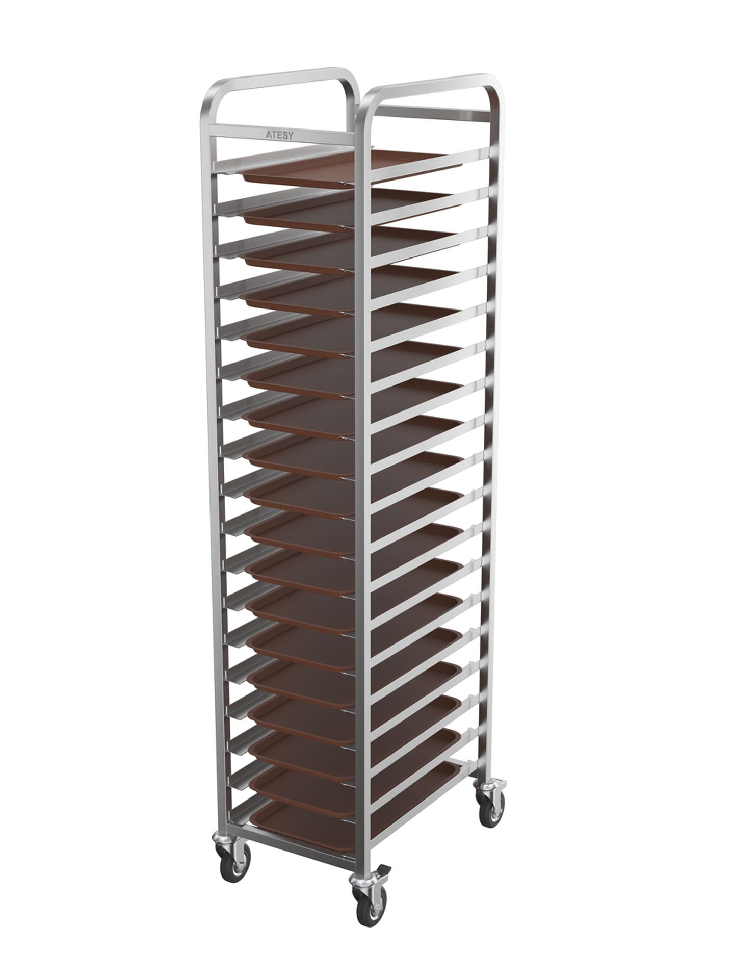 415х600х1900 мм, РАЗБОРНАЯ, AISI304,  вместимость подносов 350х600 мм - 18шт., расстояние между уровнями 93 мм, 2 колеса с тормозом