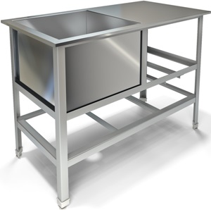 800х430х850, Ванна сварная из нержавеющей стали AISI 304 (одна ёмкость) 330х330х300, Каркас: разборный уголок, оцинкованная сталь, обвязка.
