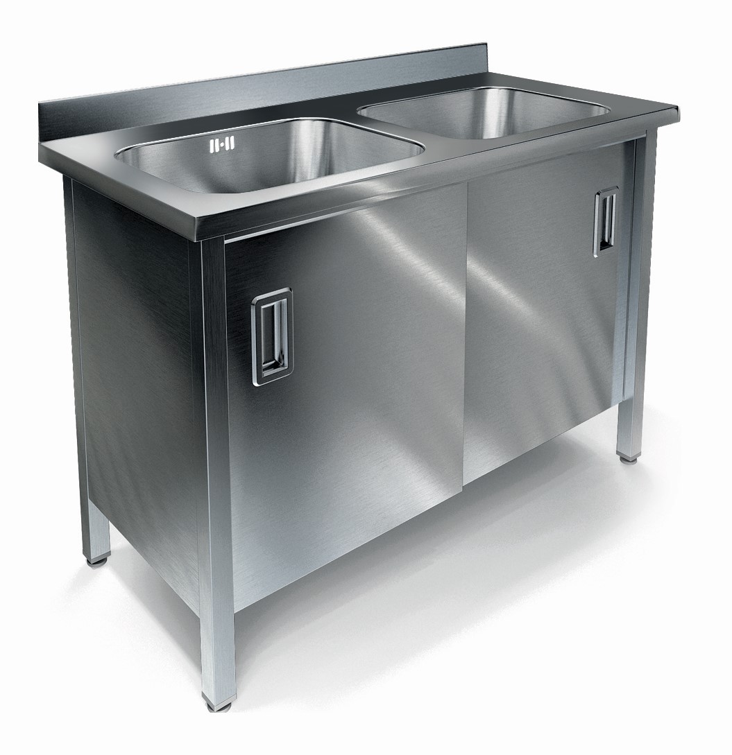 1200х700х850, Ванна цельнотянутая из нержавеющей стали AISI 304 (две ёмкости) 500х500х300, Каркас: сварной из нержавеющей стали AISI 430, двери купе.