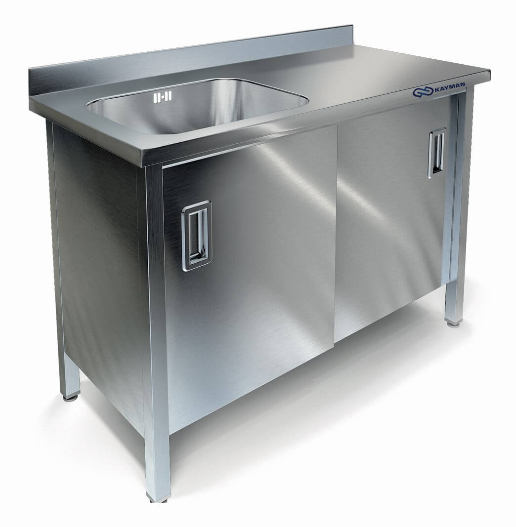 1200х600х850, Ванна цельнотянутая из нержавеющей стали AISI 304 (одна ёмкость) 400х400х250, Каркас: сварной из нержавеющей стали AISI 430, двери купе.