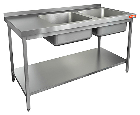 НСО2М-16/6БПП ЭЦ стол-моечная ванна, 2 секц., (500х400х250) справа, (оцин.угол)