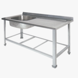 1200х600х850мм, Одна цельнотянутая емкость размером 500х400х250 из нержавеющей стали марки AISI 304 толщиной 1мм, ванна справа, обнижение 15мм, крыло рифленое с сушкой и наклоном для стекания воды с посуды в ванну. Объемный пристенный борт высотой 70мм. Каркас сварной из уголка 40х40 толщиной 2мм, покрытого порошковой краской серого цвета, внизу по периметру обвязка. Ванна комплектуется выпуском с нержавеющей решеткой и механическим запорным клапаном, диаметр выпуска 90мм, диаметр подключаемого сифона 50мм, перелив, регулируемые опоры. На дно ванны нанесена виброшумоизоляция. Ванна поставляется в собранном виде.