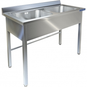 1000х600х850мм, Стол производственный с бортом высотой 70мм и ваннами моечными. Столешница из нержавеющей стали марки AISI 304 толщиной 1мм. Каркас сварной из трубы 40х40 нержавеющей стали марки AISI 430 толщиной 1,2мм. Две цельнотянутые емкости размером 400х400х250 из нержавеющей стали марки AISI 304 толщиной 1мм. Фартук с трех сторон из нержавеющей стали марки AISI 430 толщиной 0,8мм. Регулируемые опоры. Стол поставляется в собранном виде.