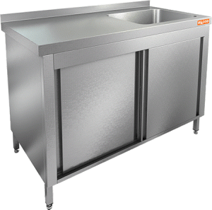 1400х700х850мм, НСЗК1М-14/7БП (отступ под коммун.) стол с ванной  моеч. 1 секц. (500х500х300) справа, закрыт.,двери-купе,HICOLD RUS