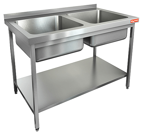 1200х600х870мм, НСО2М-12/6БП ЭЦ стол-моечная ванна, 2 секц., (500х400х250), (оцин.угол)