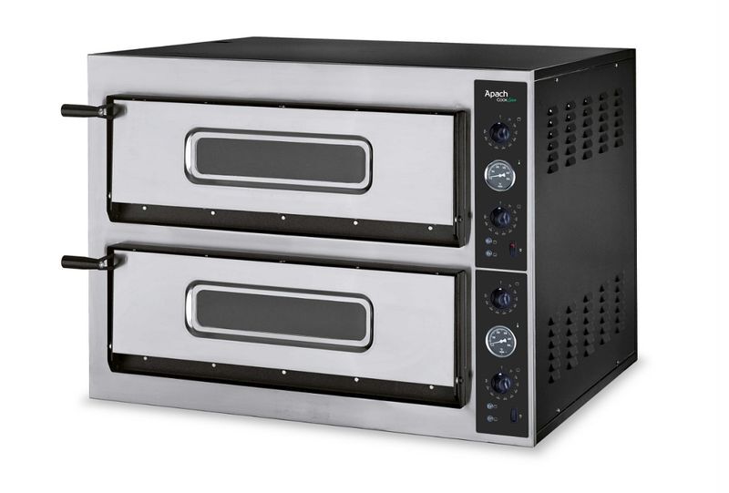 1010х1210х750мм, 232 кг, 18кВт, 380В, 2 камеры 720х1080х140мм, t: 50°C – 500°C, вместимость - 12 пицц по 35 см (по 6 на камеру)