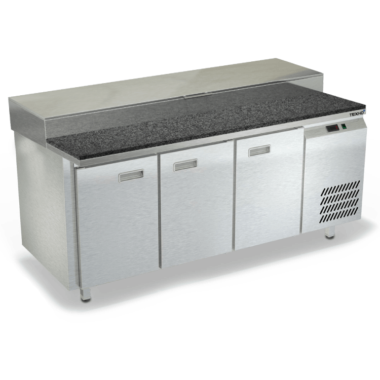 1835х700х850мм, Охлаждаемый стол для пиццы, боковое расположение агрегата. Столешница камень толщиной 20мм, корпус из нержавеющей стали марки AISI 430. Задняя панель и дно из оцинкованной стали. 3 двери. Температурный режим +2...+10, глубина рабочего стола 324 мм, напряжение 220В, мощность 410Вт, внутренний объем стола 505л, в зону под гастроёмкости помещается 9 GN 1/3 глубиной 150мм, полезный объём стола 366л. Компрессор (Испания). Хладон R-134. Петля доводчик (Польша). Полка решетка регулируемая по высоте с шагом - 45 мм, гастронормированная, нагрузка 35кг. Нога опорная круглая, регулировка 50мм (Италия). Поставляется в собранном виде.