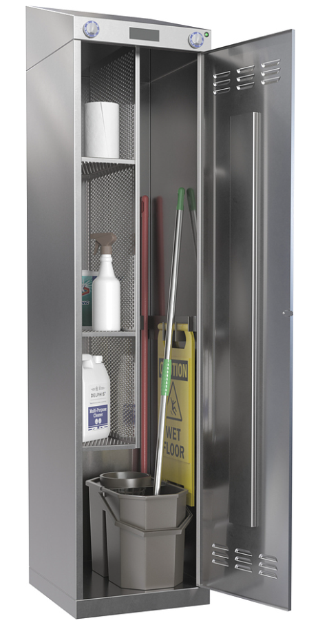 - В левой стороне корпуса расположены угловая полка для моющих средств, перчаток и прочего мелкого инвентаря