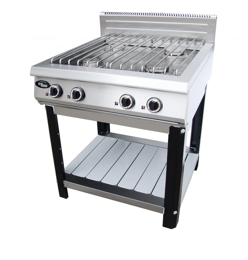 4 профессиональных горелок класса Heavy Duty -31 kW с запальной системой розжига, 2 горелки по 6,5 кВт, 2 по 9 кВт, уникальная решетка горелок.