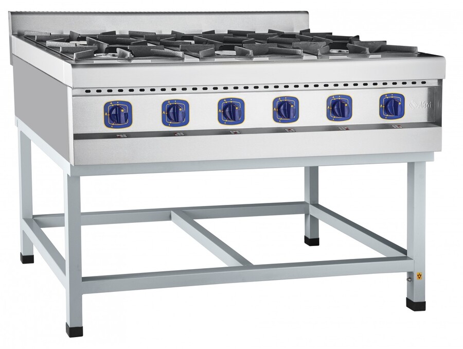 1200x900х970 мм, Газовая плита 6-ти горелочная ПГК-69П, на краш. подставке, без духовки, 900 серия