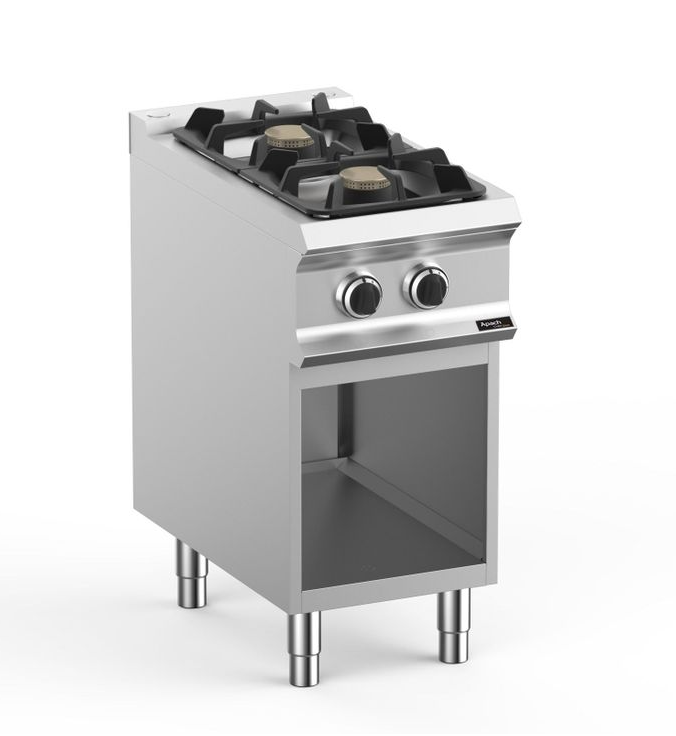 400х900х850 мм, 51 кг, газ 18 кВт, 2 конфорки 375х372 мм, на открытой подставке