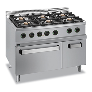 1100*700*850, газ, 6х7кВт, 6 конфорок, на электрич. жар.шкафу (380В, 5,3кВт), направляюющие GN 2/1