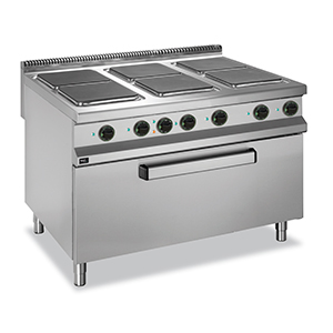 1200*900*850 мм, 380В, квадратные конфорки (4x3кВт+2x4 кВт)+ эл. жар. шкаф maxi 1000x695x290 мм (10 кВт), направляюющие GN 2/1