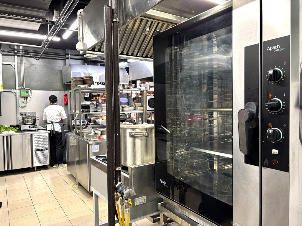 Тепловой остров состоит из плит и жарочных поверхностей ABAT. 10-уровневый пароконвектомат Apach Cook Line помогает запекать и колеровать блюда, регенерировать охлажденные и замороженные заготовки.