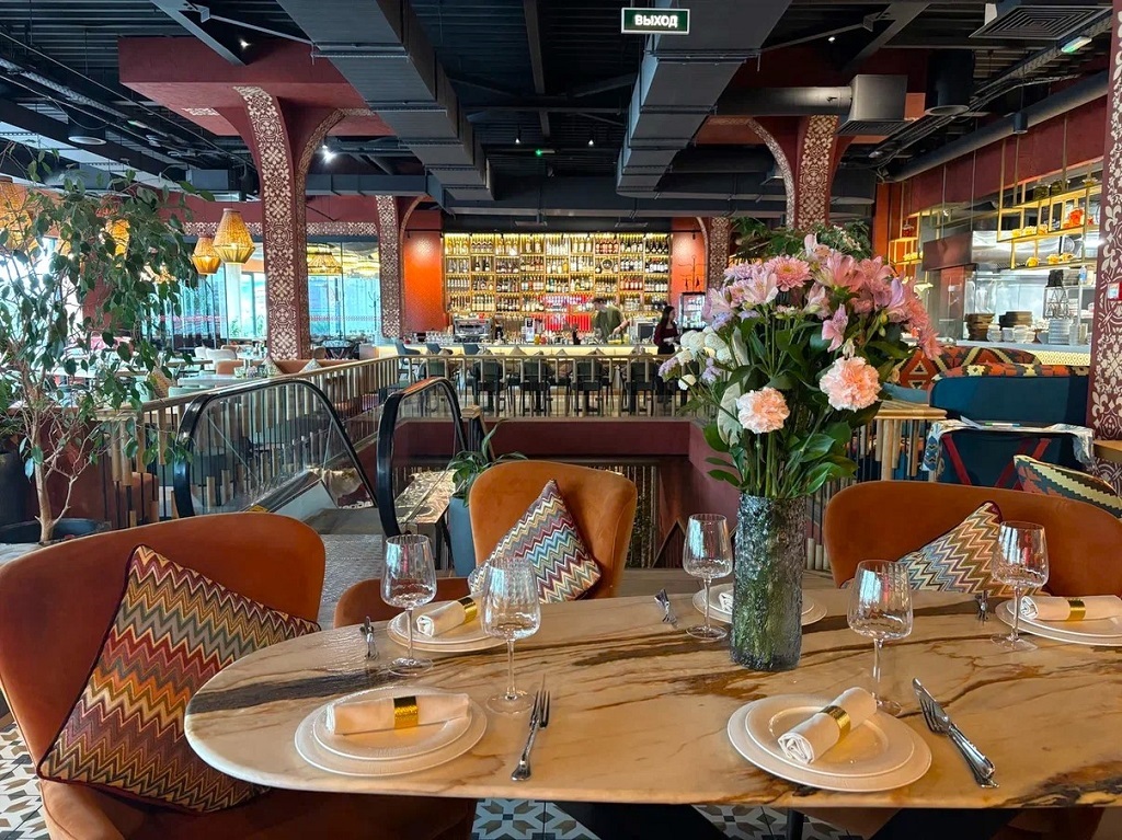 В меню есть буквально все: от суши до лагмана. Особый шик — блюда на «живом» огне и много вариаций на тему мяса, включая шаверму, ребрышки и плов.