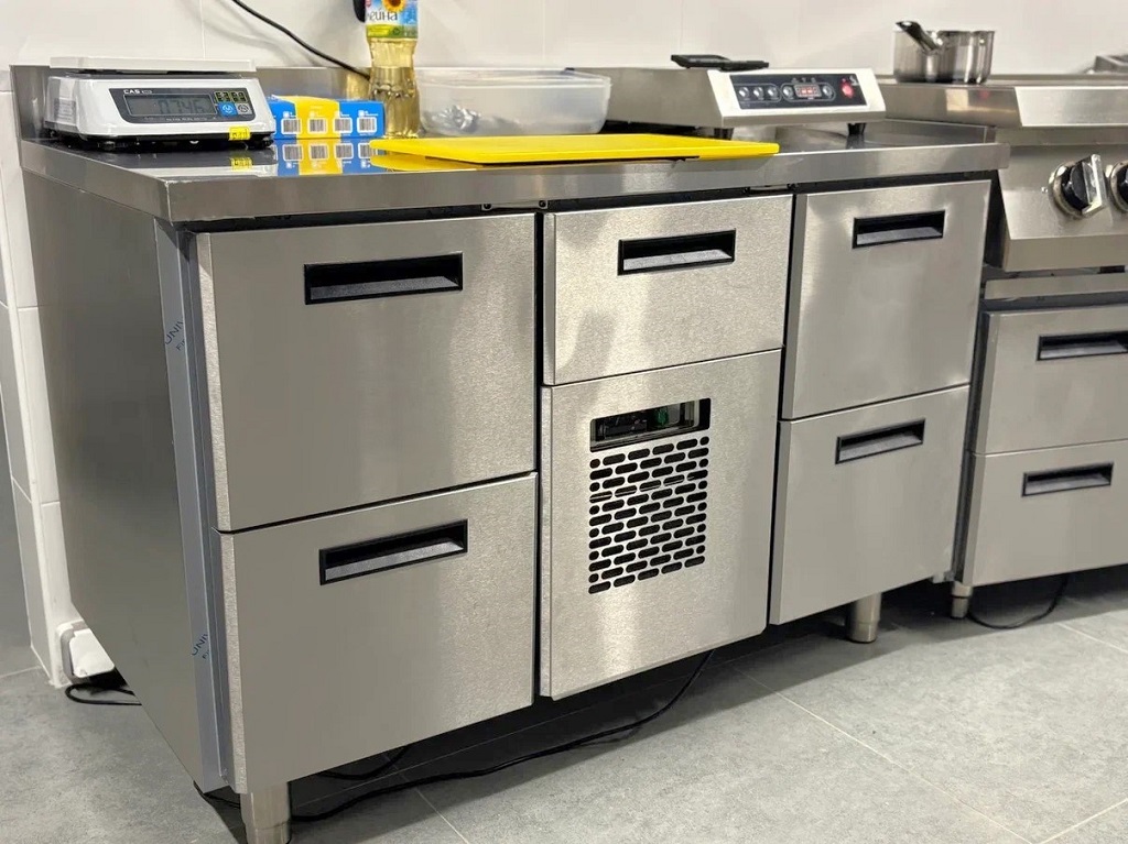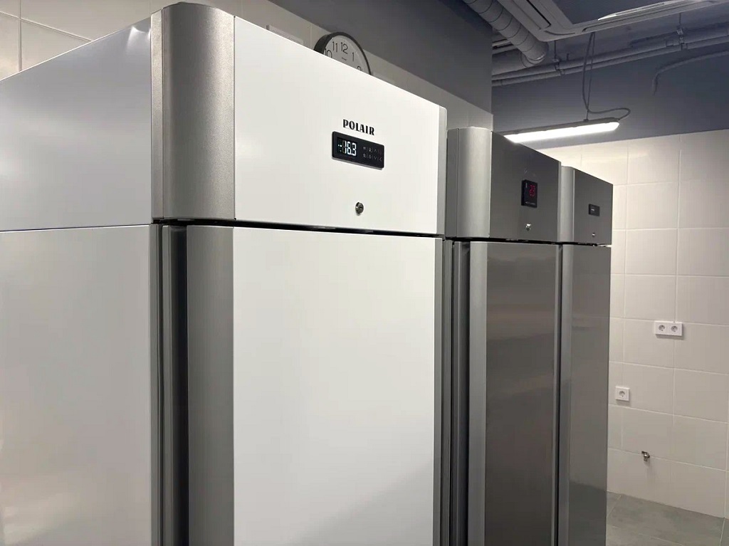 Чтобы хранить продукты в соответствующих температурных режимах, закупили средне- и низкотемпературные шкафы POLAIR, а также смонтировали холодильную камеру на 4,5 кубометров с потолочным моноблоком.