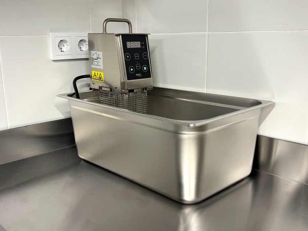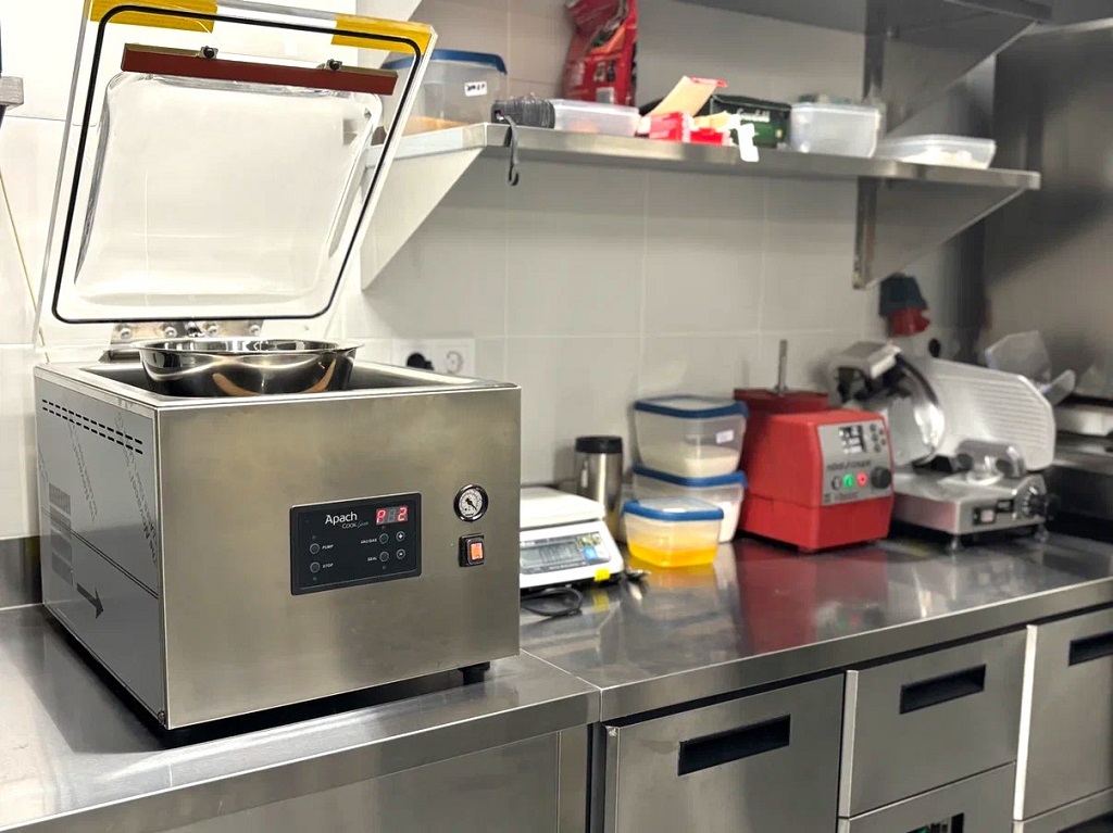 Не обошлось и без пароконвектомата. 6-ти уровневый UNOX Cheftop создает идеальные условия (пар, конвекция, пароконвекция) для всевозможных блюд, выпечки, десертов. Пароконвектомат Cheftop позволяет готовить полезные блюда на пару (овощи, рыба, пельмени), жарить и грилировать мясо (без сухости и потери веса), делать ЗОЖ-выпечку и ПП-десерты, реализовывать су-вид приготовление под вакуумом. Машина может функционировать без постоянного контроля персонала и даже ночью. Революционные технологии и «умные» режимы делают это оборудование незаменимым на кухне ресторана.