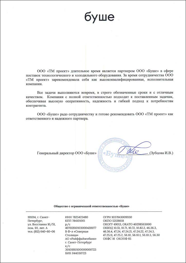 Благодарность от сети пекарен Буше